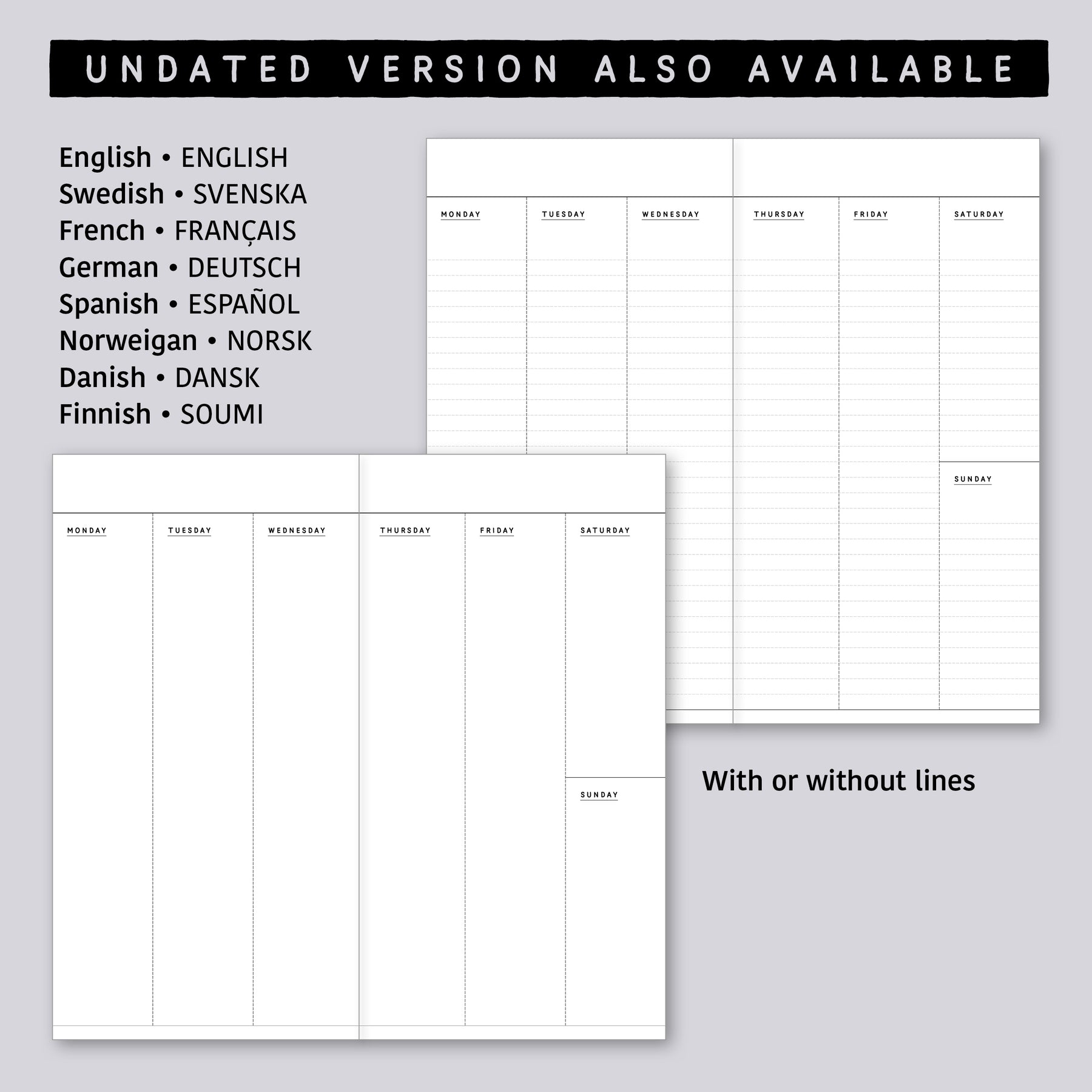 • Languages: English, Swedish, French, German, Spanish, Norweigan, Danish & Finnish. 🇸🇪 Swedish also has a version with Swedish holidays.