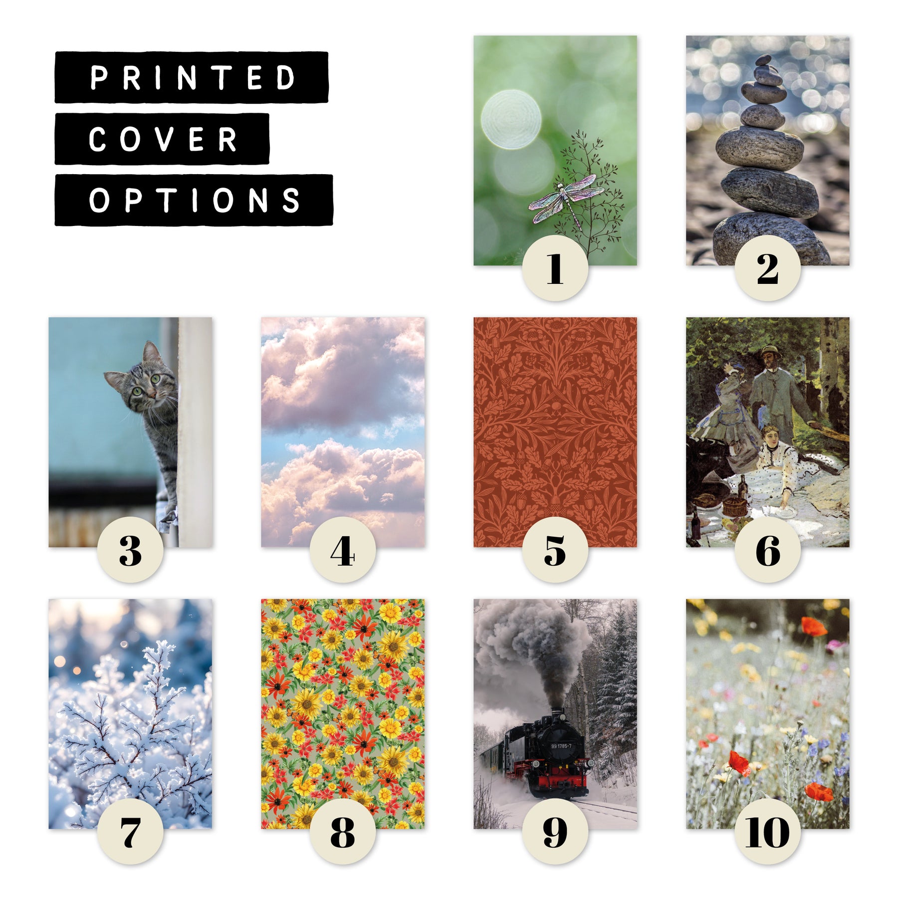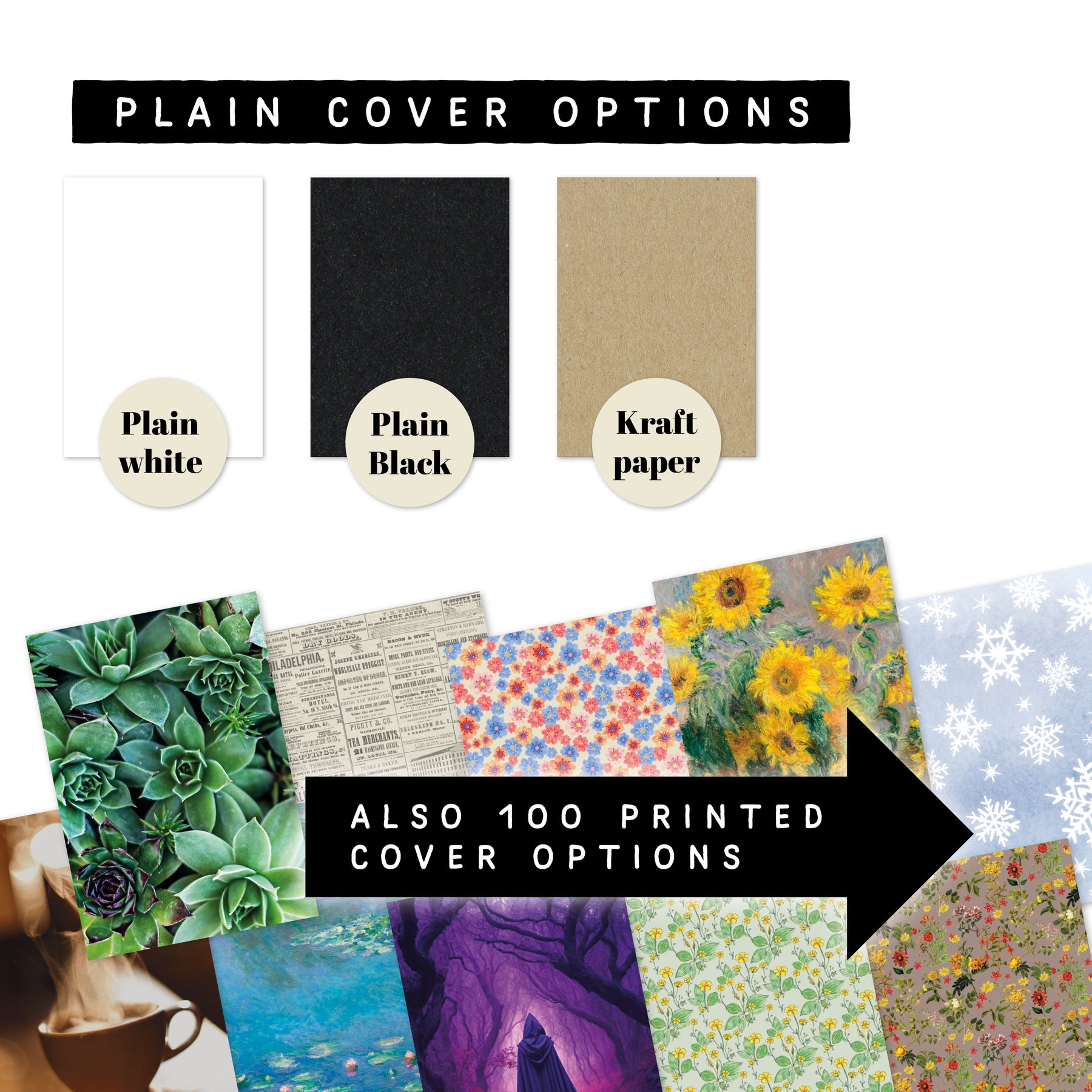 If you are ordering only one booklet, we will disregard any info on second booklet. If your order 2 booklets but only give one cover option, first option will be used for both. These booklets are handmade. Please allow for tiny imperfections and note that colours may vary from each screen. No exchanges or returns possible for custom products. Please allow some extra time for production.