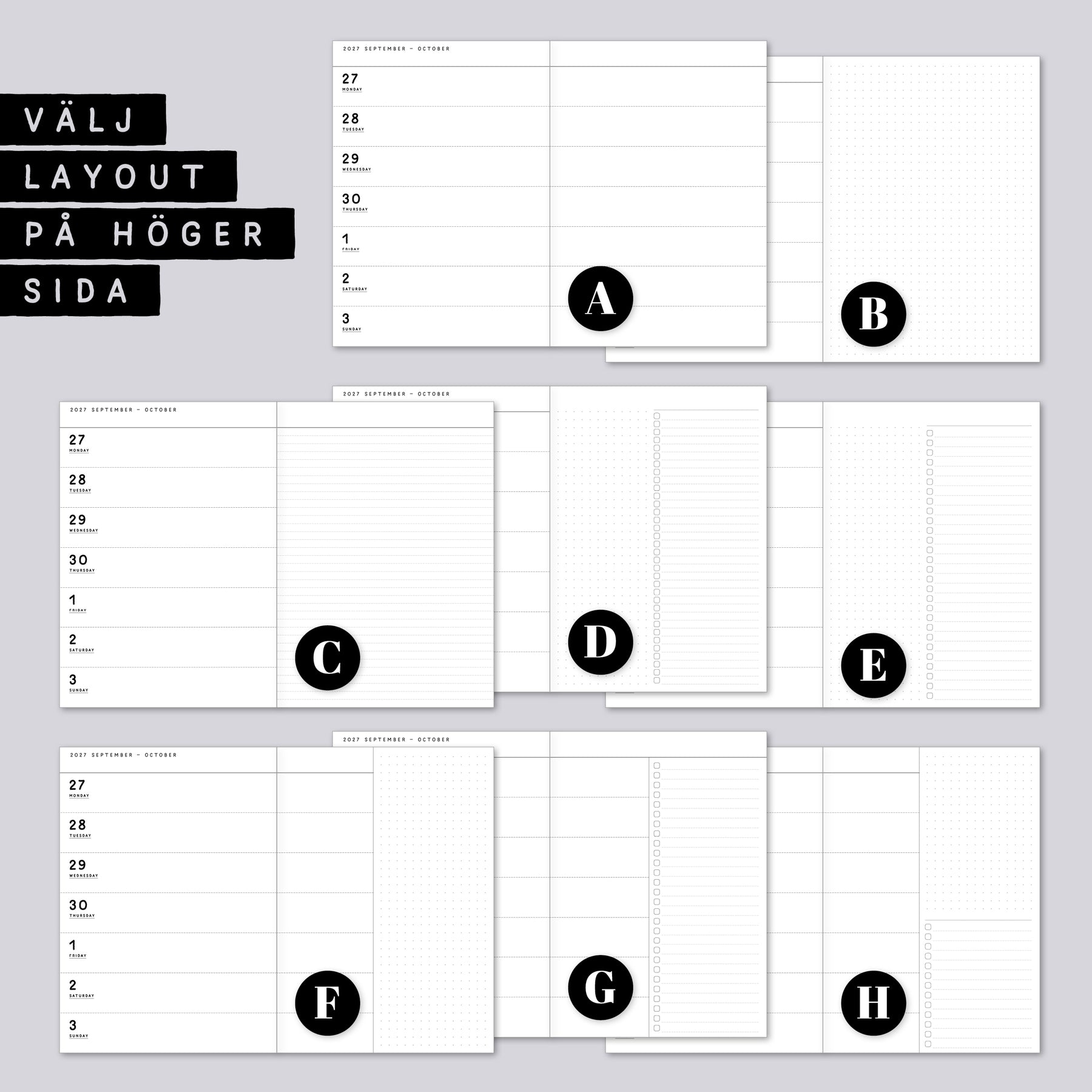 • 5 layoutalternativ för högersidorna: (se bilder)
