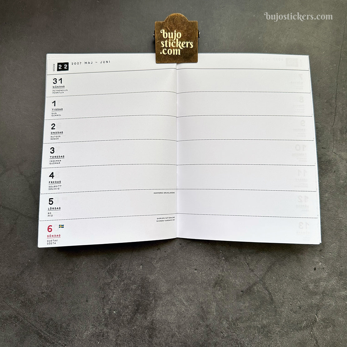 Swedish horizontal dated weekly calendar in B6 size (125x176 mm or 4.9 × 6.9 inches).