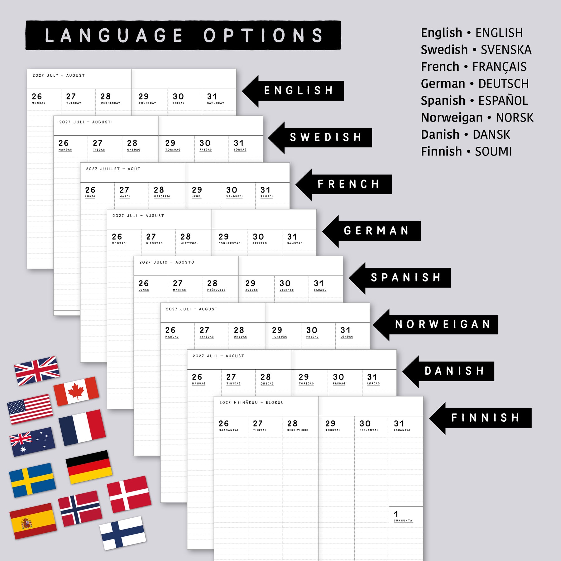• Languages: English, Swedish/svensk med röda dagar, Swedish black (same as other languages), French, German, Spanish, Norweigan, Danish & Finnish