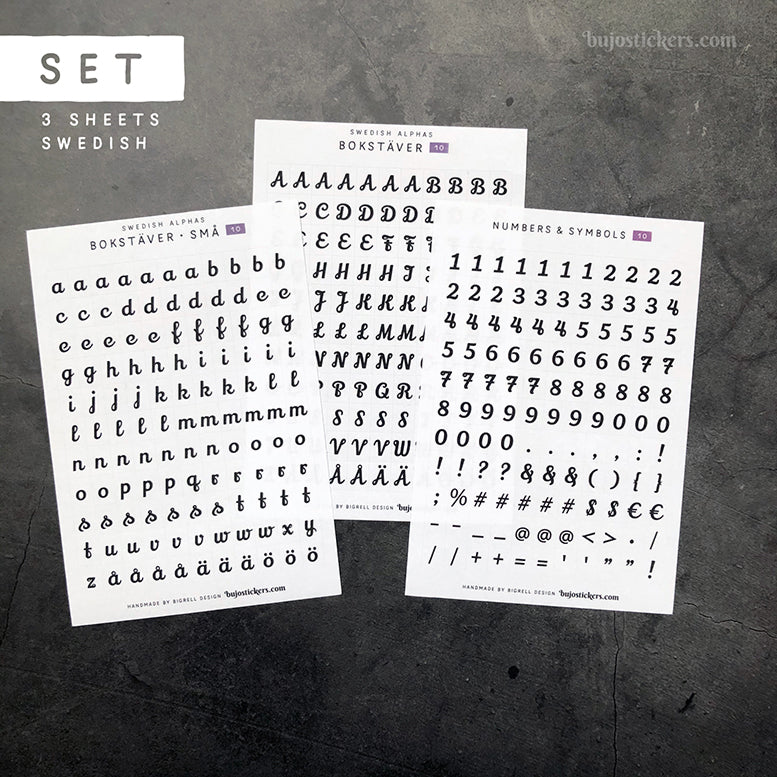 Set of Swedish alphas with the Swedish glyphs Å, Ä and Ö.