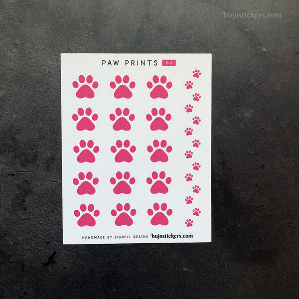 Cute paw print stickers in pink with 18 separate stickers and one long paw print trail sticker to let your pet walk all over your project. For all your decorating, journaling, planning, scrapbooking, memory keeping, letters and card making needs!