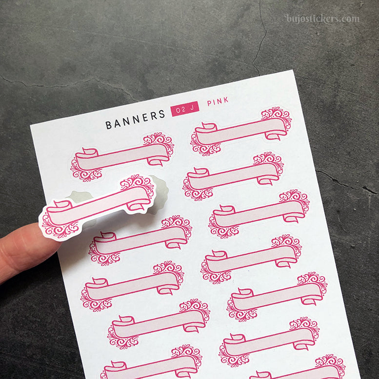 16 pink banner stickers. Also available in other colours and designs. Click here to view all.
