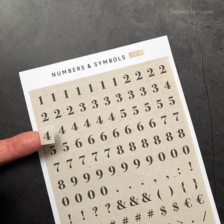 Number stickers 0-9 and useful symbols like #!?@() etc.