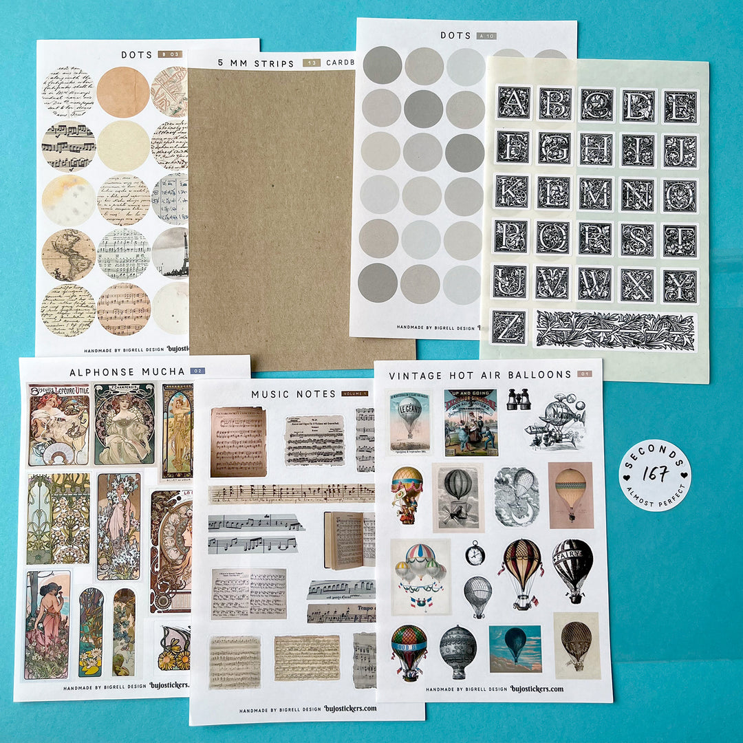 This set of stickers are seconds. That means they have som defects. It can be slightly off colours, smudges, print not being perfect, or the cutlines being off, or it is simply discontinued items or an older version of current stickers. All of them are usable, and we sell them at a great price! Everything you get in this bag you can see in the picture (note that colours may vary from each screen), and you will receive these exact items.